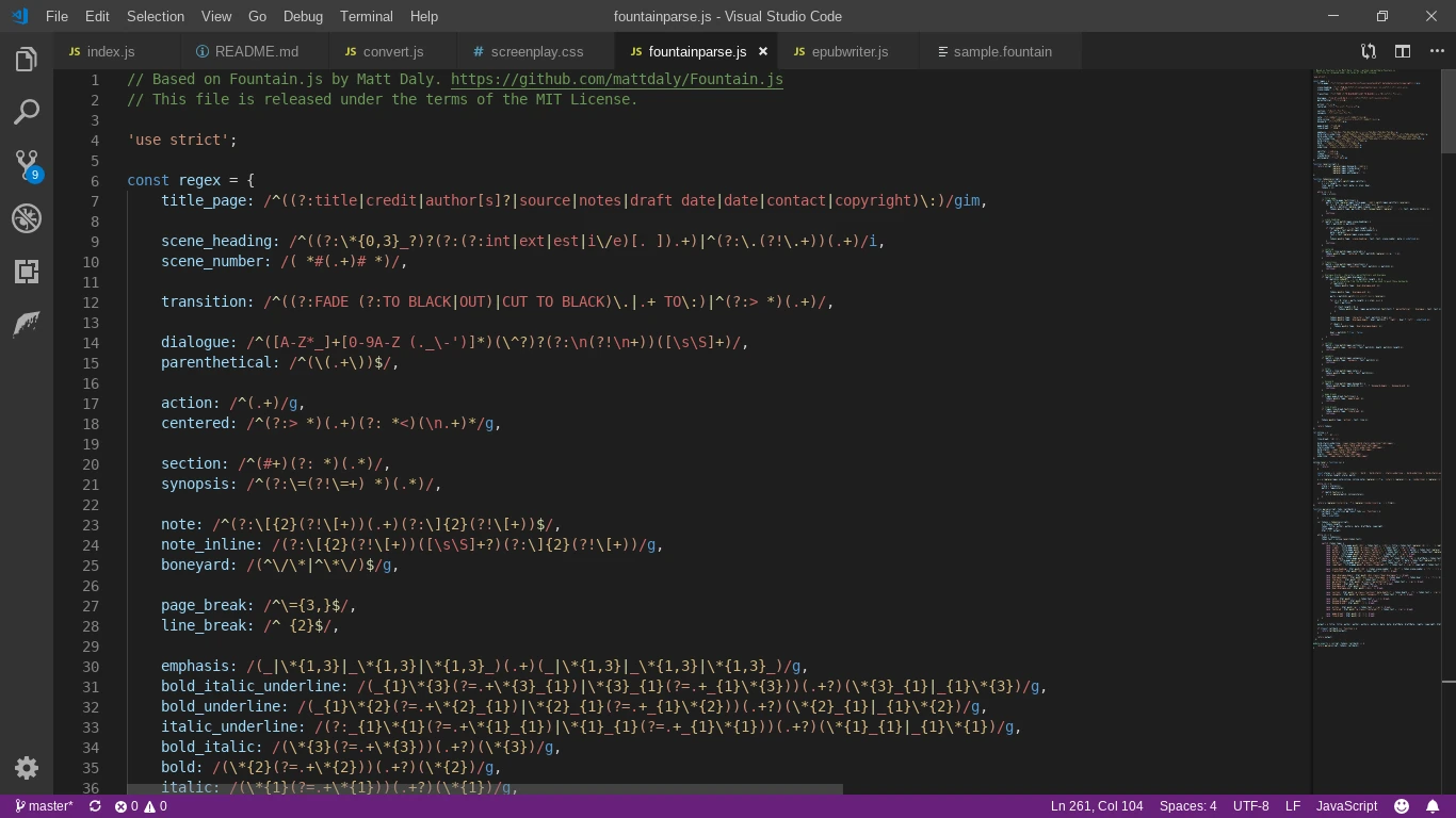I recently wrote about playing with Node.js development on Chrome OS with Linux beta. Building on that, I decided to create a basic application for converting Fountain screenplays to EPUB 3. While the project is very much a work in progress, I wanted to write a bit about it.